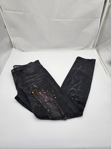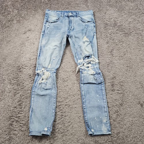 Trestles Jeans Mens Size 34x31 Skinny Fit Distressed Rip Paint Splatter Denim J1