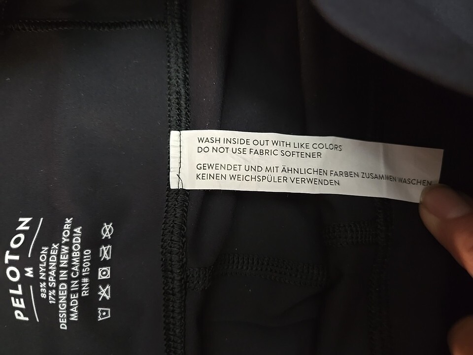 Elevate your workout wardrobe with these stylish Peloton cropped leggings in women's size medium. The black leggings feature a side logo and are made of a blended fabric of spandex and nylon. The tapered leg style and 20 inch inseam make these leggings perfect for gym and training, cycling, or yoga.