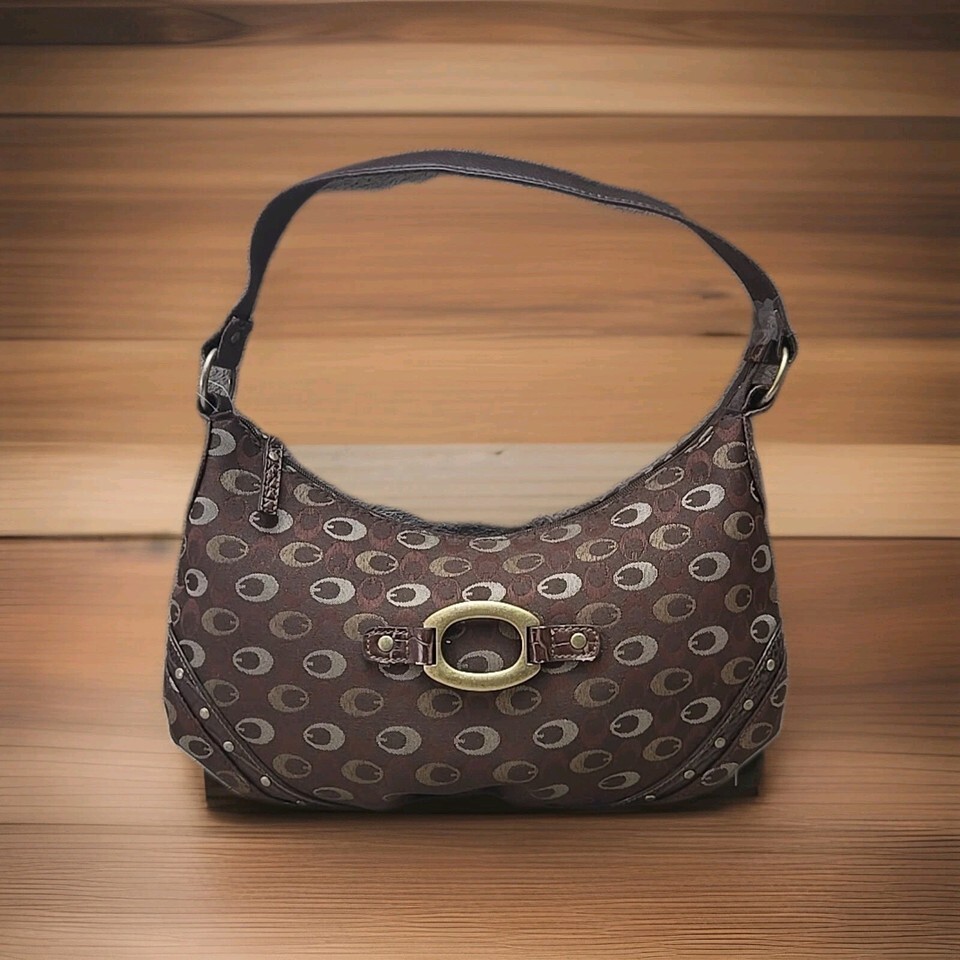 This unbranded women's shoulder bag in brown is a classic and versatile accessory for any occasion. The geometric pattern, crescent shape, and gold hardware add a touch of elegance to the medium-sized purse. The shoulder strap handle in brown faux leather offers both style and practicality, while the zip closure ensures your belongings are secure. Made from durable polyester material, this purse is perfect for travel, casual outings, or business meetings, adding a stylish and functional touch to your wardrobe.