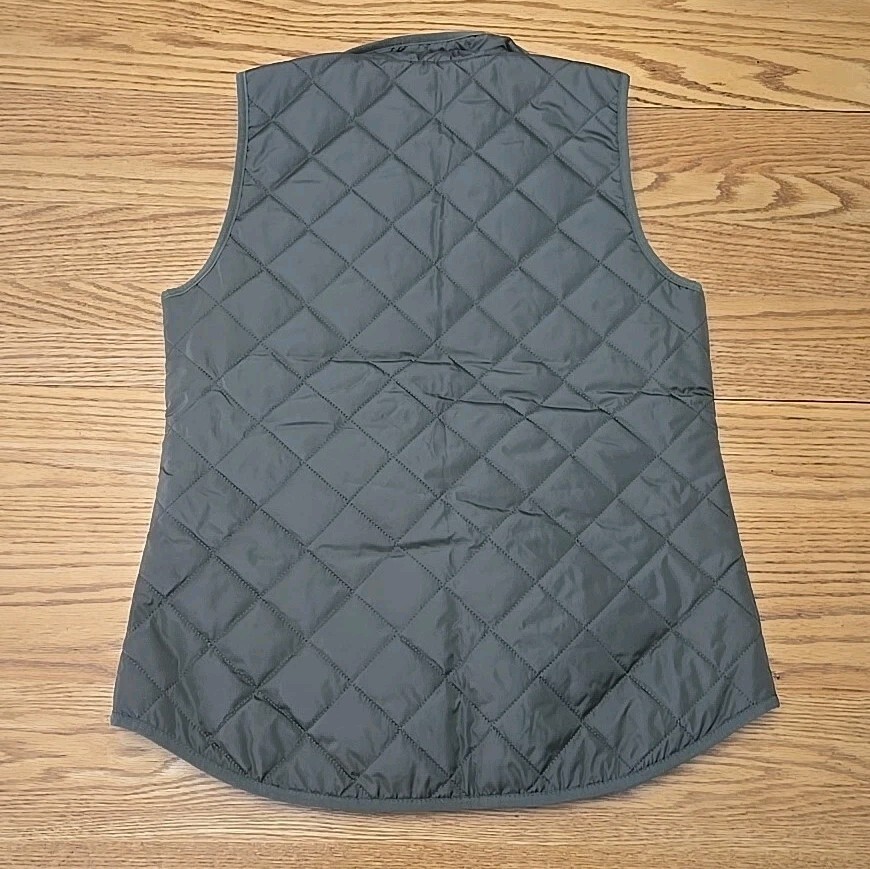 This Old Navy puffer vest in women's size medium is a stylish and functional addition to any wardrobe. Made from 100% polyester with a quilted design and zipper closure, this vest is perfect for outdoor activities or chilly weather. The lightweight and full zip features, along with the pockets, make it practical for everyday wear while the classic green color adds a pop of color to any outfit. Easy to care for with machine washable instructions, this vest is a versatile piece that can be worn for various occasions.