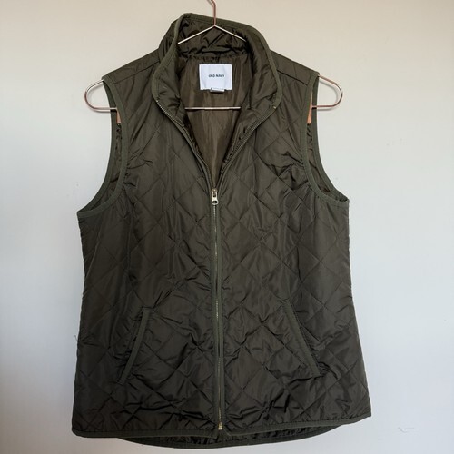Old Navy Puffer Vest Womans Size Medium Oliver Green Quilted Outdoor N2