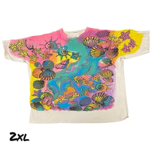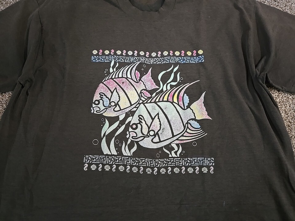 Fruit Vtg 90s Tropical Fish Single Stitch Tshirt Unisex Sz 2XL USA Made Outdoor