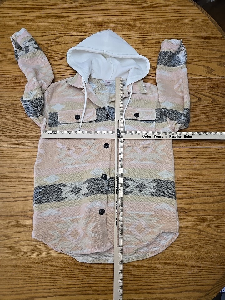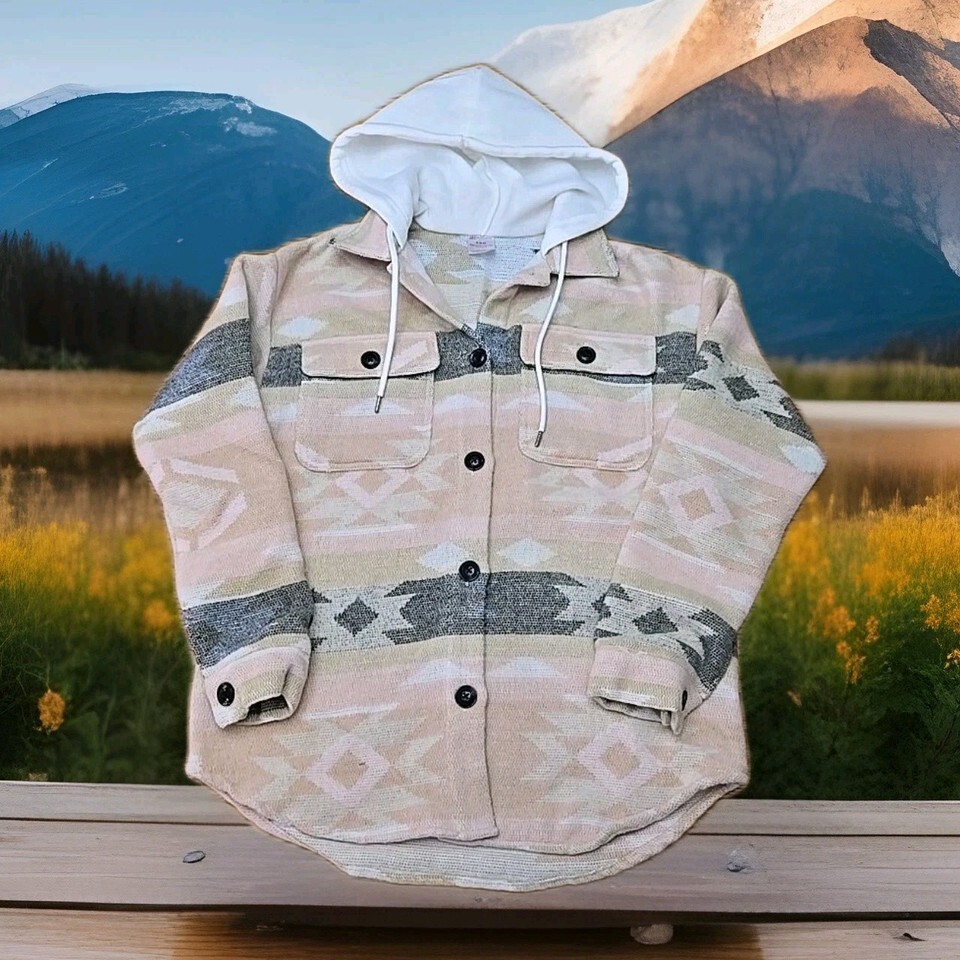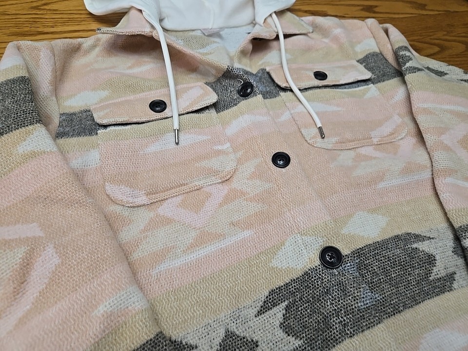 No Boundaries Aztec Hooded Chore Coat Womans Size Small Western Shacket Outdoor