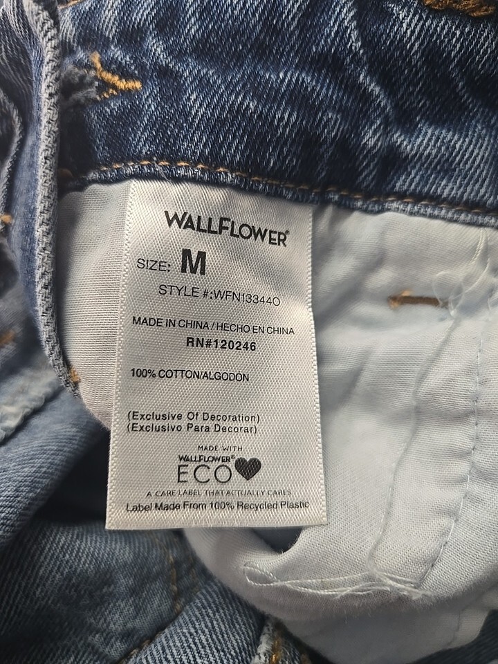 Elevate your style with these WallFlower Jeans denim overalls in a medium blue color. These overalls are perfect for any occasion, whether it's a festival, barn party, or even a casual day out. The overalls feature a 5-pocket design, buckle, button, and zip closure, and a mid-rise waistline.