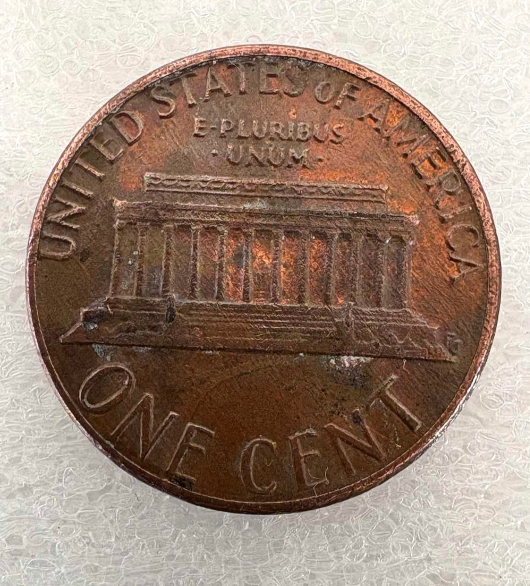 This Small Cent coin is composed of copper, minted in Philadelphia, and features a red color. It is a circulated coin belonging to the Lincoln Memorial series and is uncertified.