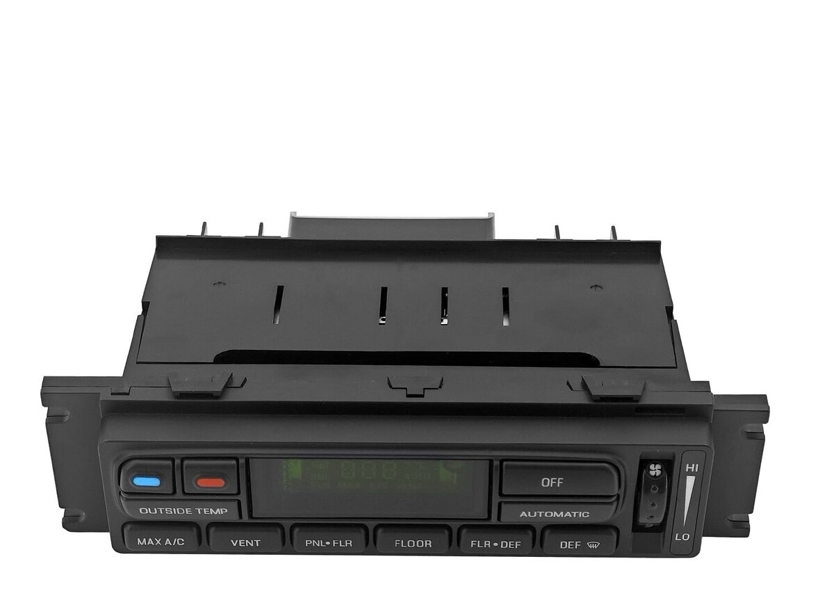 Replacement HVAC heater and climate control module for 1997?2003 Ford F-150 equipped with automatic temperature control. This unit is a direct replacement for the factory module and restores full control of A/C, heat, vent modes, defrost, and outside temperature display.