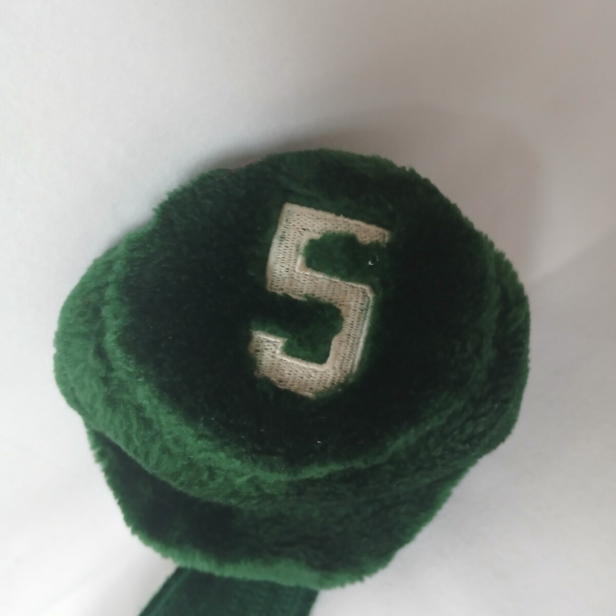 This listing is for a single green sock type golf club head cover. This cover is made for use with 5 Wood Driver type golf clubs. It features the number "5" on the end. It is gently used and has been cleaned. The golf club shown in the picture is for demonstration purpose only and is not part of this listing.
