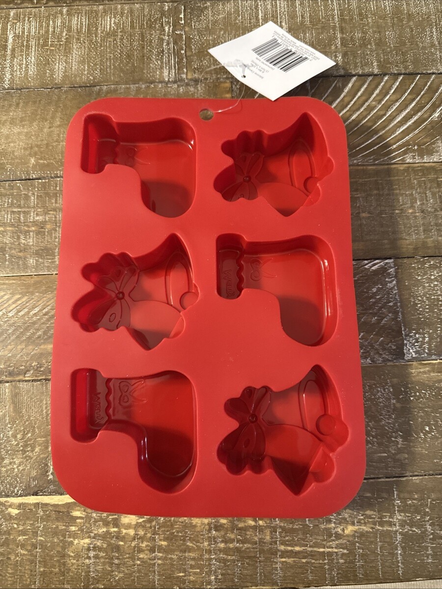 Silicone Candy Mold W 3 Xmas Bells & 3 Xmas Stockings