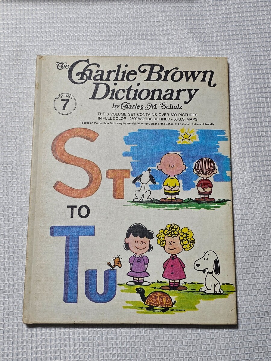 item: Vintage lot of 7 ?The Charlie Brown Dictionary? books by Charles M. Schulz, featuring classic Peanuts artwork and alphabet-based word learning. Included volumes cover A?B, C?E, F?H, I?Mo, Mo?P, Q?St, and St?Tu. These were popular children?s reference books and are highly collectible for Peanuts fans and vintage book collectors.