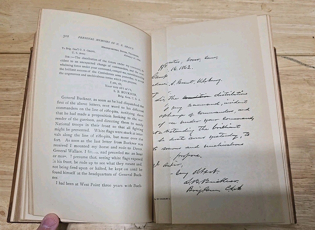 ?Interior: The text block remains intact. Crucially, the fold-out facsimile of the Lee Surrender Terms and the Civil War campaign maps are present.