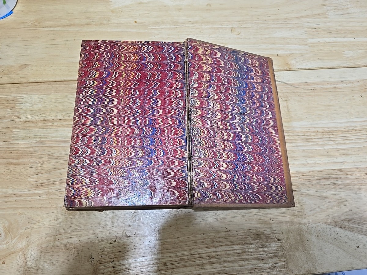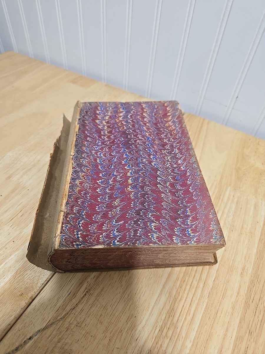 ?Exterior: Good condition. Solid binding with original leather labels. Typical age-related scuffing and minor flaking at the spine tips.
