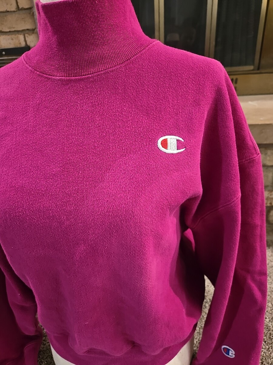 Champion Reverse Weave Vtg Mock Turtleneck Sweatshirt Womans Sz XS Magenta