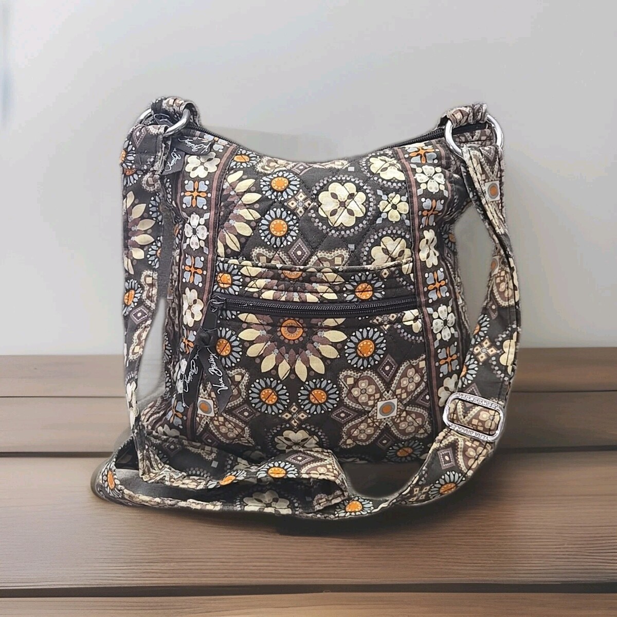 Vera Bradley Purse Brown Crossbody Floral Adjustable Strap 12x11 Zip Closure