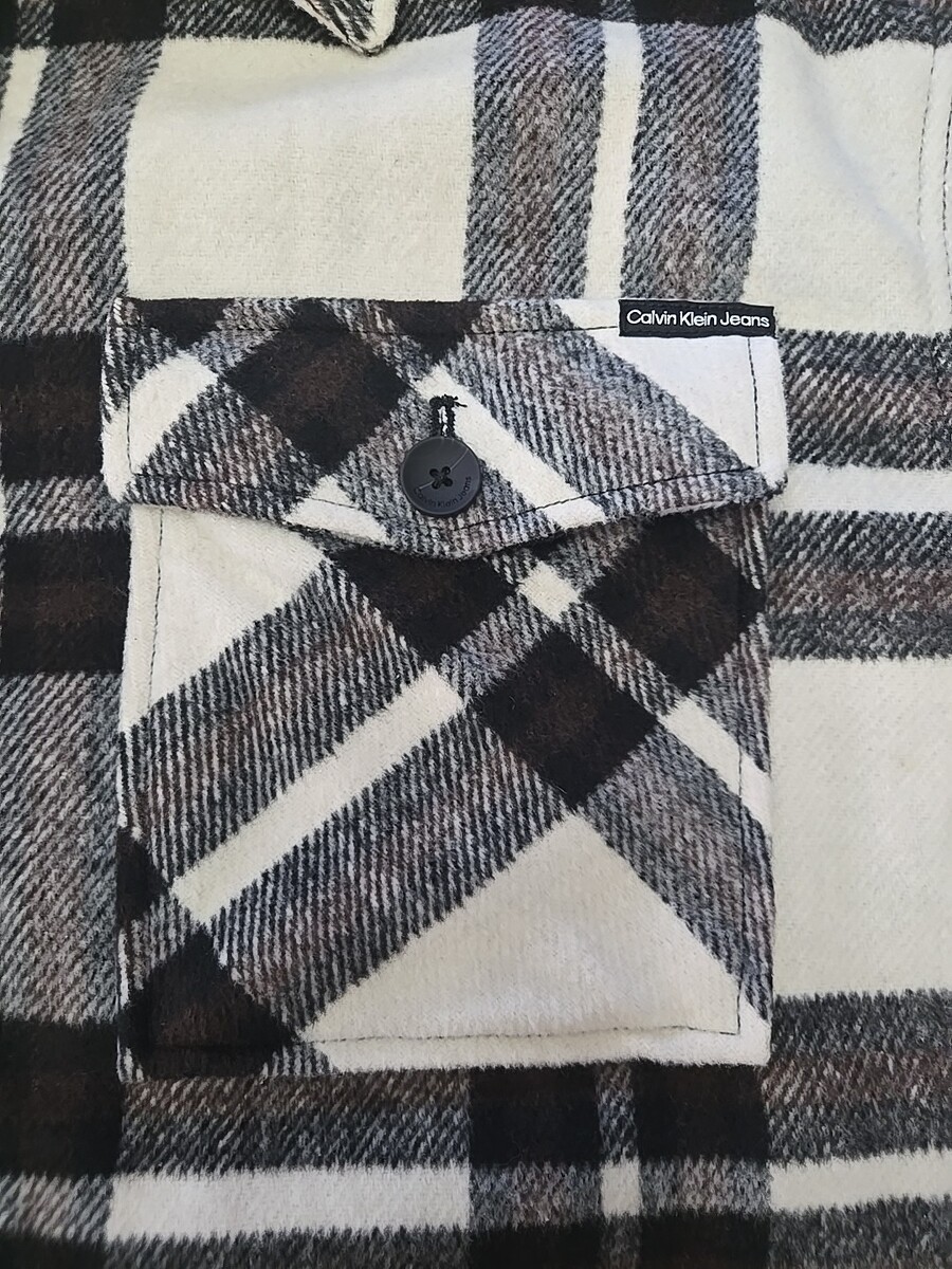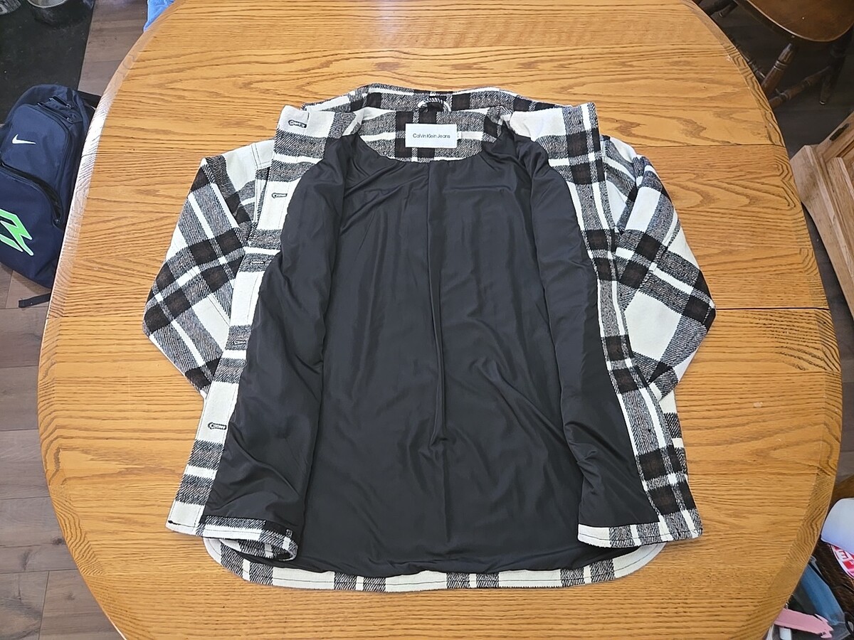 Calvin Klein Oversized Plaid Utility Shirt Jacket Womans Size XL Wool Blend