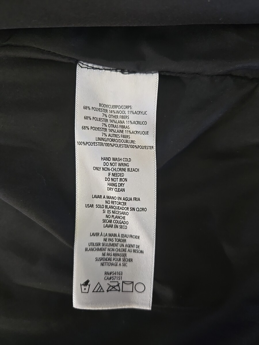 The jacket is designed with a polyester lining and insulation material, making it comfortable to wear during the colder months. The oversized fit, regular size type, and XL size ensure that it fits comfortably. The brand's signature logo and button accents add a touch of elegance to the basic jacket style. Care for the garment is easy, and you can either dry clean or hand wash it. Add this versatile piece to your collection today!