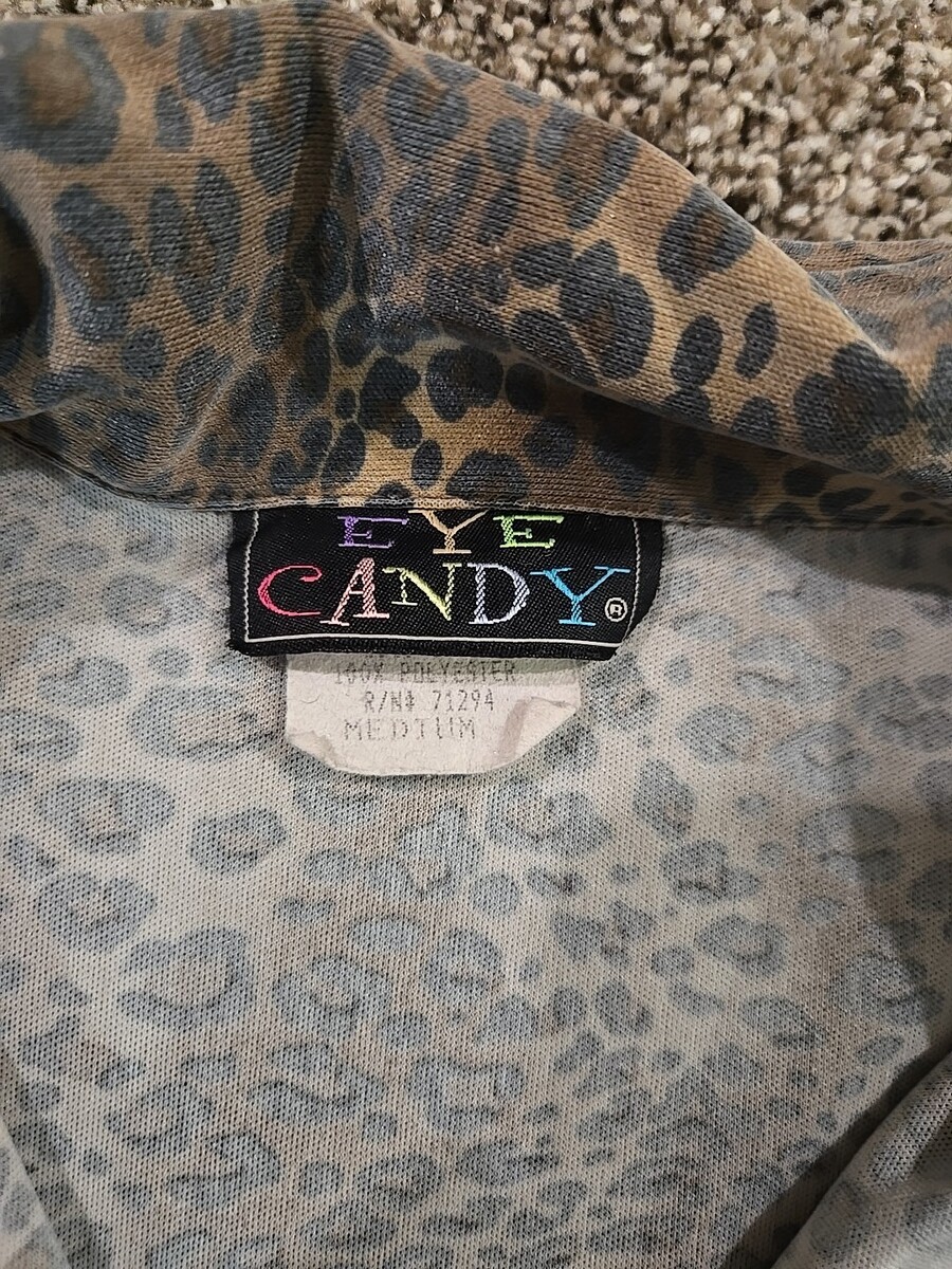 Eye Candy Vtg Y2K Leopard Print Blouse Top Womans Sz Medium Bratzcore Grunge USA