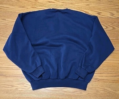 The Endless Designs Vtg All American Dad Crewneck Sweatshirt is a vintage piece made in the USA, featuring a graphic print with a patriotic theme. This men's XL sweatshirt is crafted from a comfortable cotton blend material with an embroidered accent. The pullover style and crew neck neckline make it a versatile garment suitable for all seasons, while the blue color adds a classic touch to the design. Ideal for fans of 90s style and those who appreciate Americana-inspired fashion, this sweatshirt is a unique addition to any wardrobe.