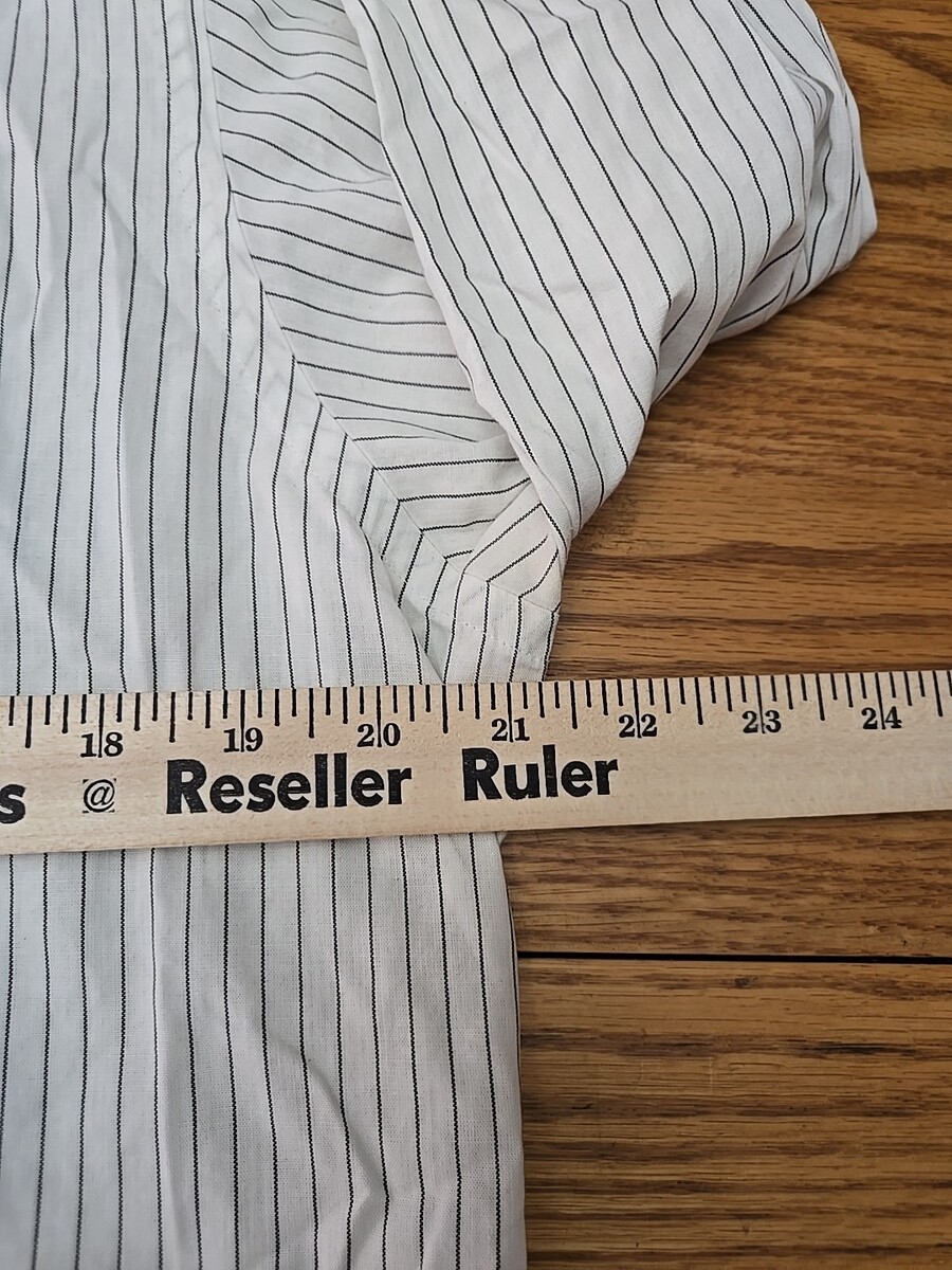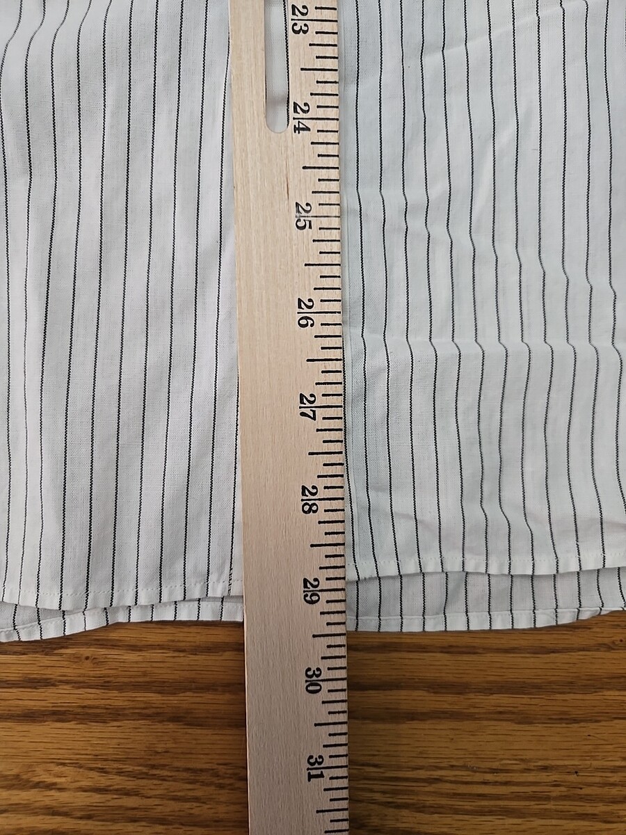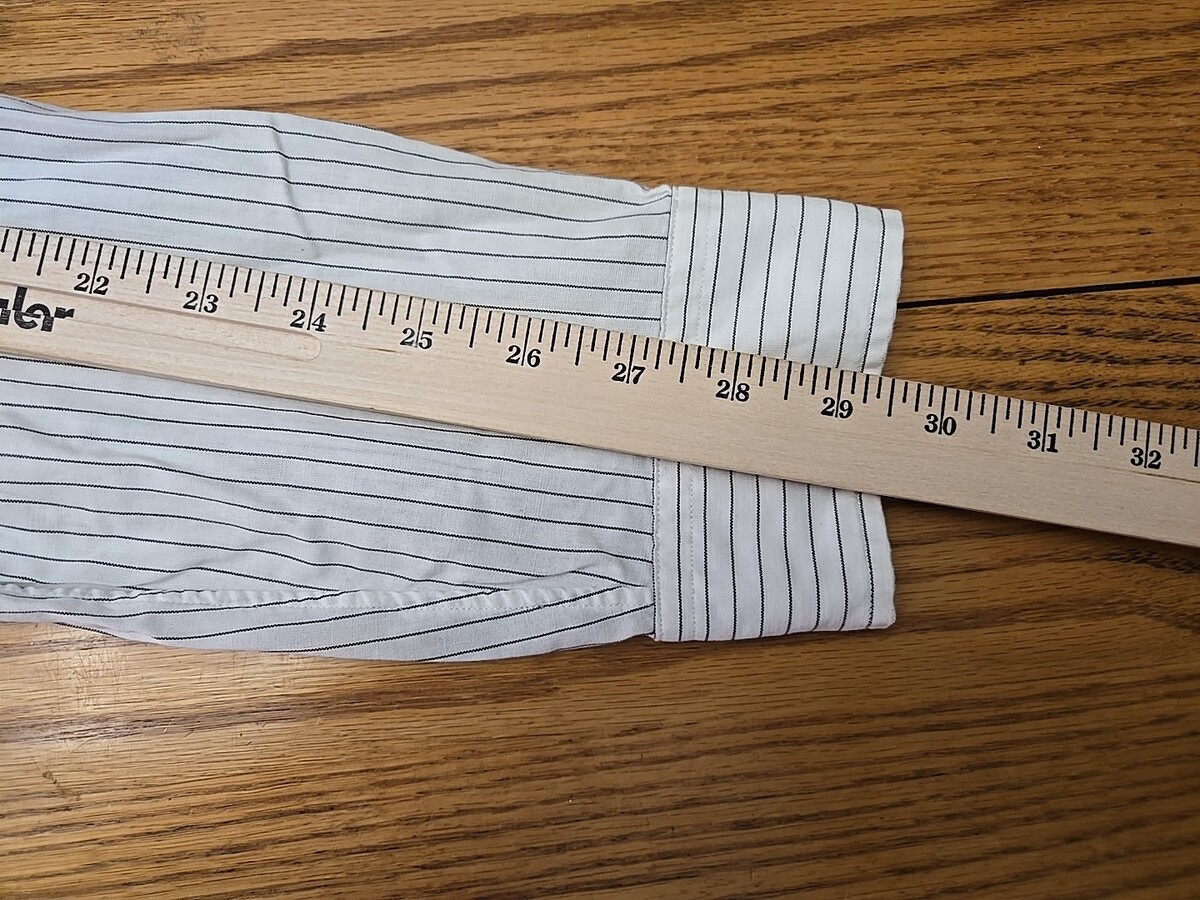 As is the nature with used clothing, original measurements and fit may have changed over time due to washing/drying and other factors. If you need additional physical measurements to help you make a decision, please let me know, and I will do my best to get you what you need.