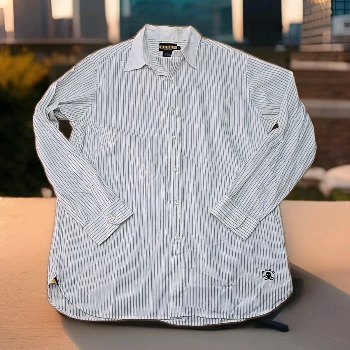 Ralph Lauren Rugby R.L.F.C Y2K Button-Up Shirt Mens Sz 16 Striped Skull Bones
