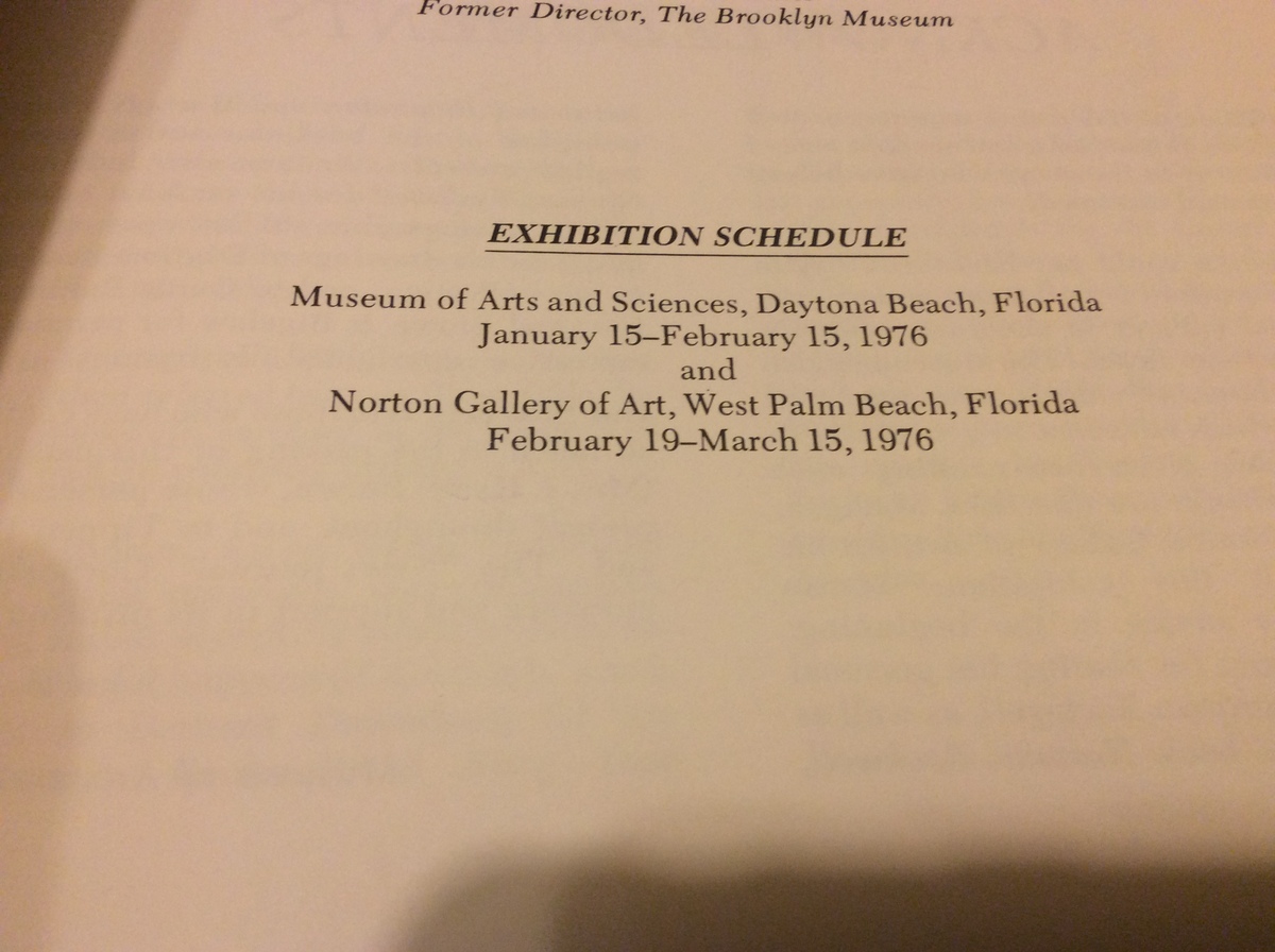 CATALOG AND EXHIBITION ORGANIZED by THE MUSEUM OF ARTS and SCIENCES OF DAYTONA BEACH, FLORIDA