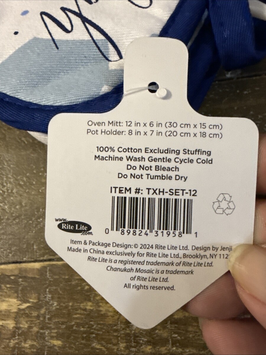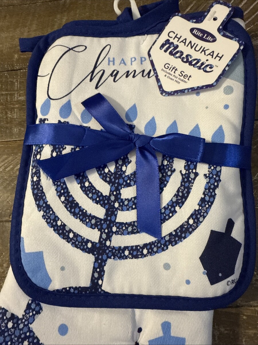 The Rite Lite Chanukah Mosaic Pot Holder Set is a colorful and festive addition to any kitchen. Made of 100% cotton, these pot holders feature a mosaic design inspired by the traditional Chanukah celebrations. The multicolor design adds a fun and vibrant touch to your cooking space, while the durable material ensures protection against hot pots and pans. Perfect for adding a touch of Jewish tradition to your kitchen decor, these pot holders are both functional and stylish.