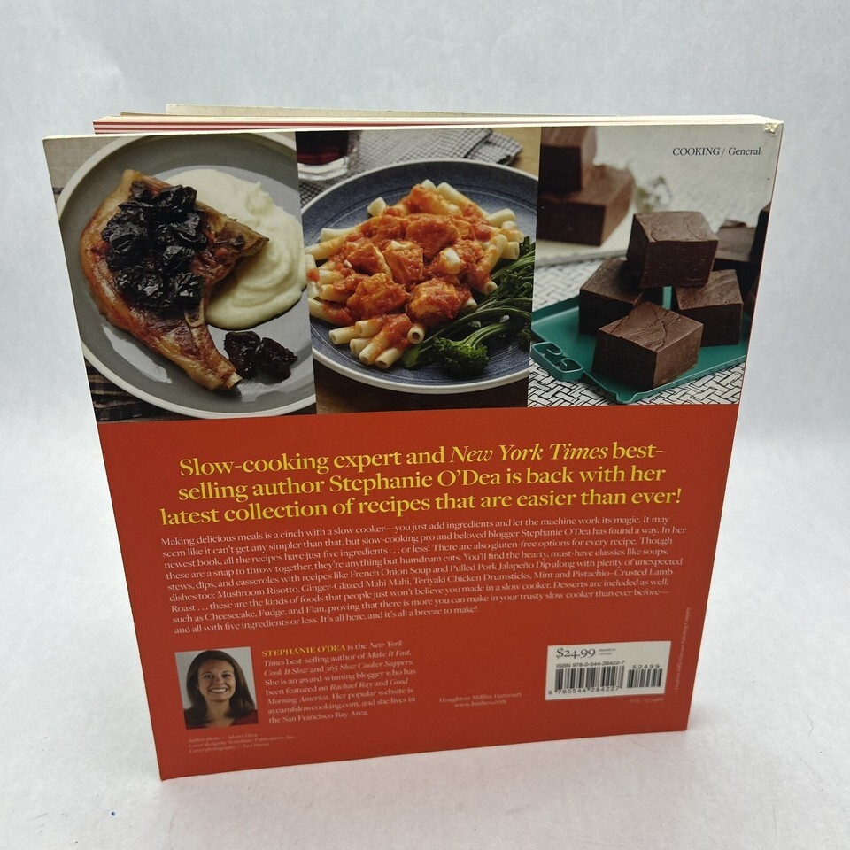 Stephanie O?Dea, New York Times best-selling author of Make It Fast, Cook It Slow and 365 Slow Cooker Suppers, is back with her easiest assortment of recipes ever in Five Ingredients or Less Slow Cooker Cookbook. Just because these recipes are a breeze to throw together doesn?t mean they?re lacking in flavor or creativity. O?Dea knows how to make standard slow-cooker fare delectable, with recipes like Pulled Pork Jalapeรฑo Dip, Pureed Pumpkin Soup, and Cornbread Casserole, while also providing plenty of unexpected slow-cooker dishes like Ginger Glazed Mahi Mahi, Artichoke Angel Hair Pasta, Flan, and Cheesecake. There is also a whole chapter for vegetarian meals, as well as gluten-free options for every recipe in the book. And she does it all with five ingredients or less!