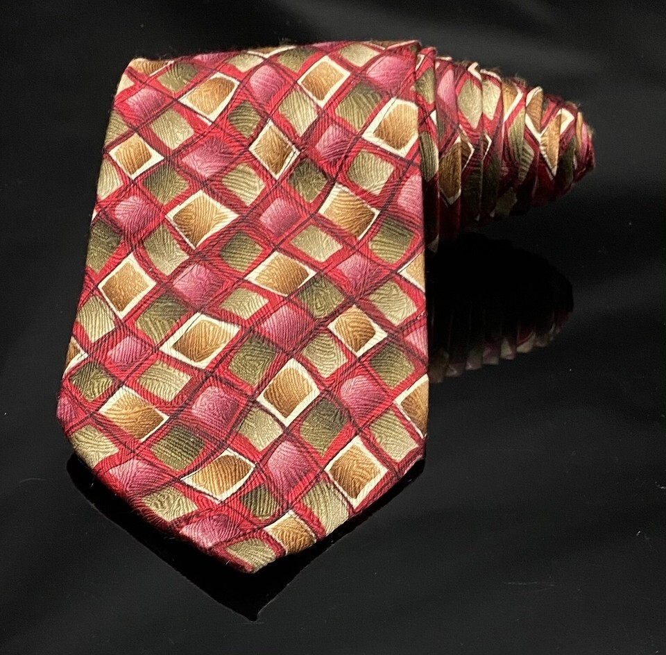 You are buying a J. Garcia Mens Necktie Tie red Facets II Diamonds Geometric Silk