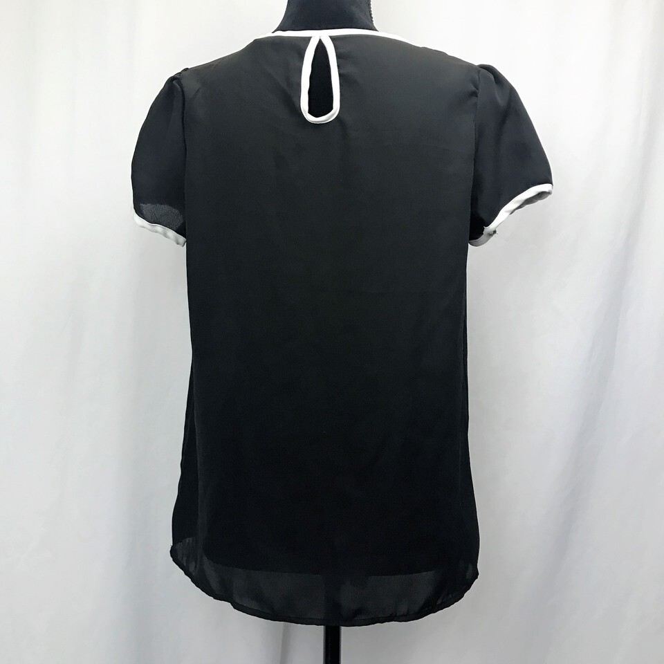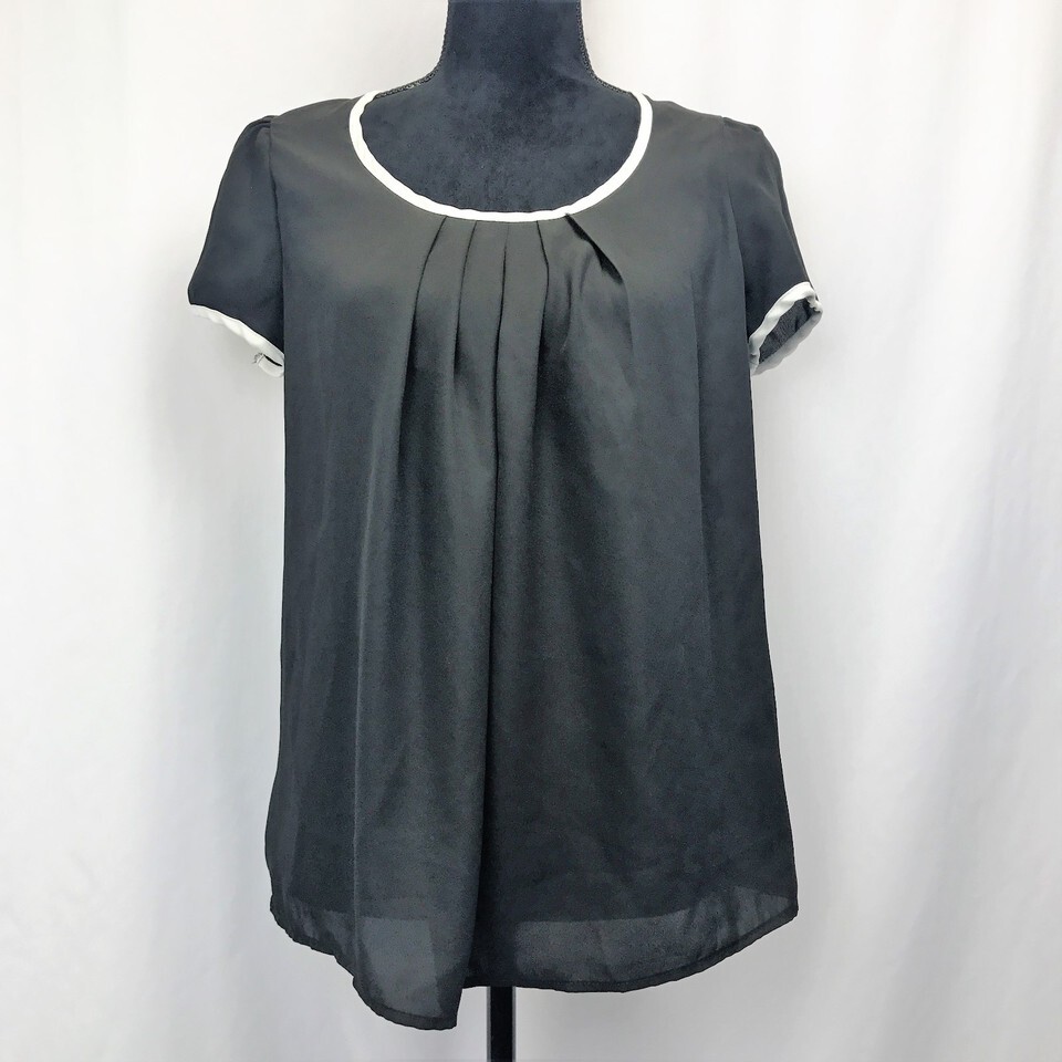 Zenana Outfitters Casual Blouse, Black With White Trim size M