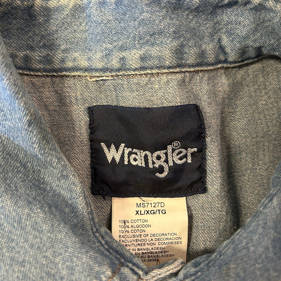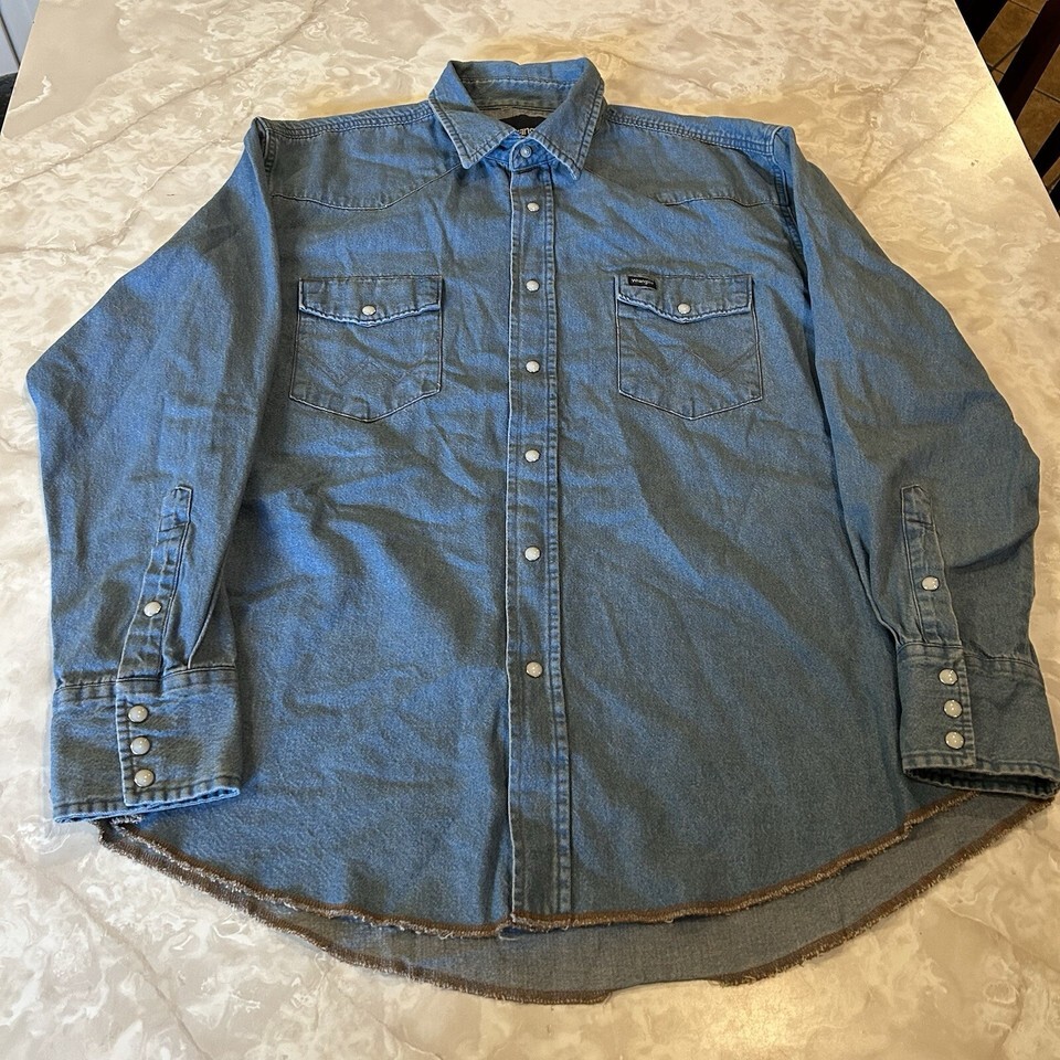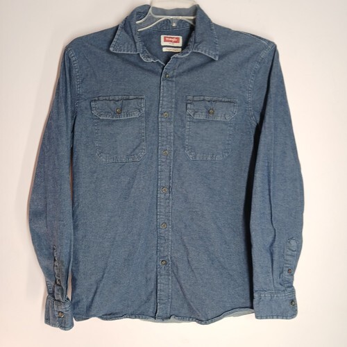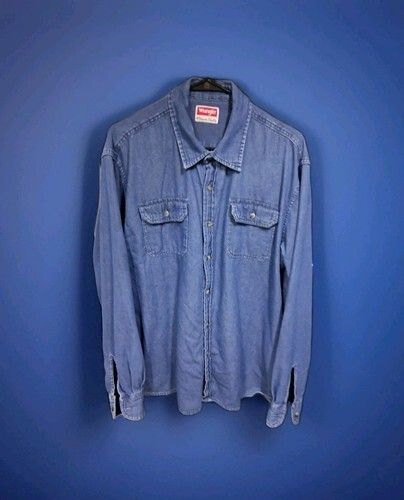 Wrangler Men's Shirt Comfort Flex Blue Denim Button-Up Long Sleeve XL