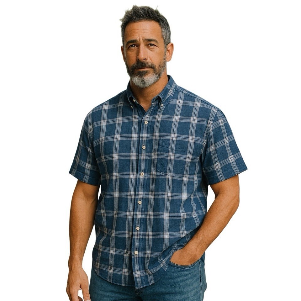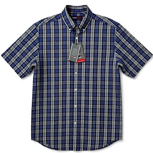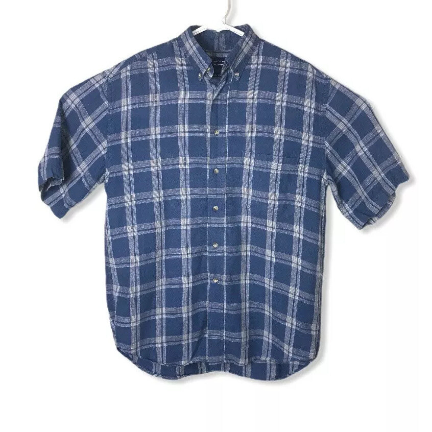 You are buying a Roundtree Yorke Mens Blue Plaid Button Up Shirt Short Sleeve Size Medium