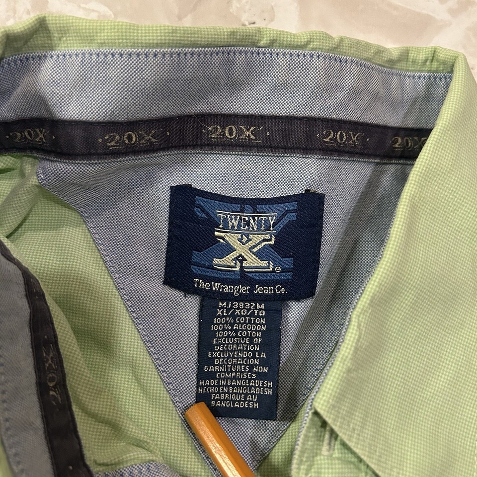 Wrangler Twenty 20X Men's XL Long Sleeve Button Up Shirt Green