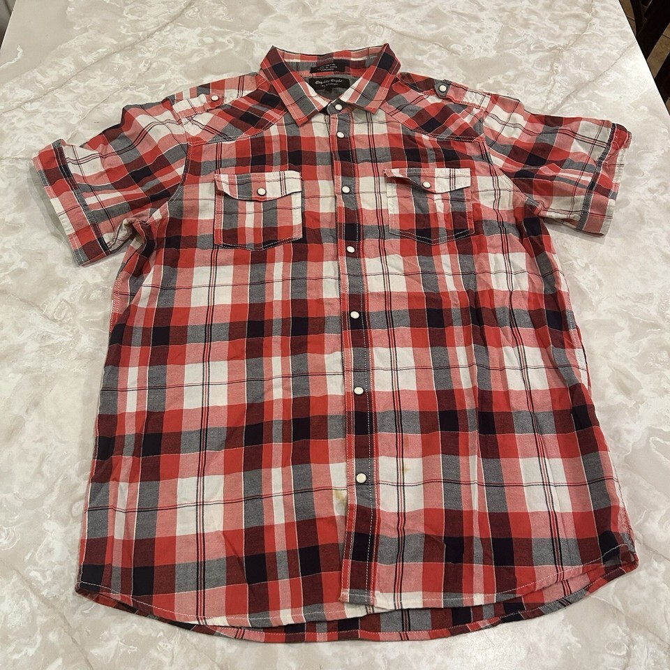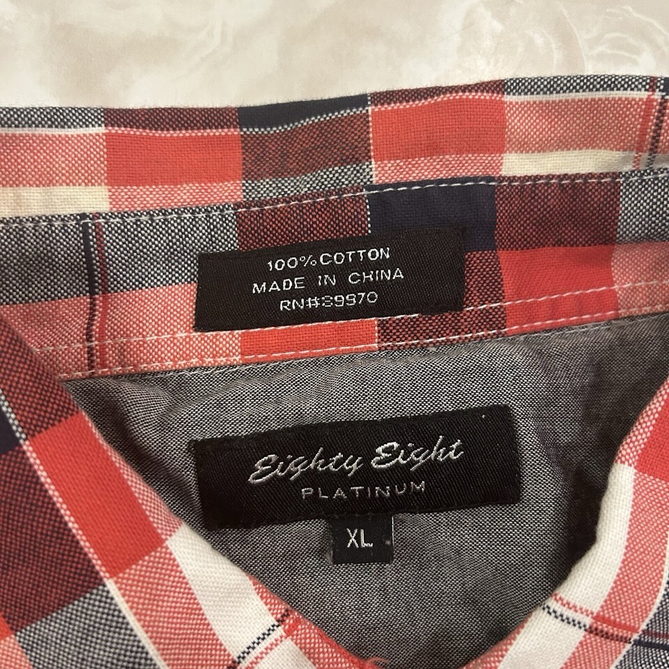 Eighty Eight Platinum Shirt Mens XL Red Plaid Button Up Short Sleeve