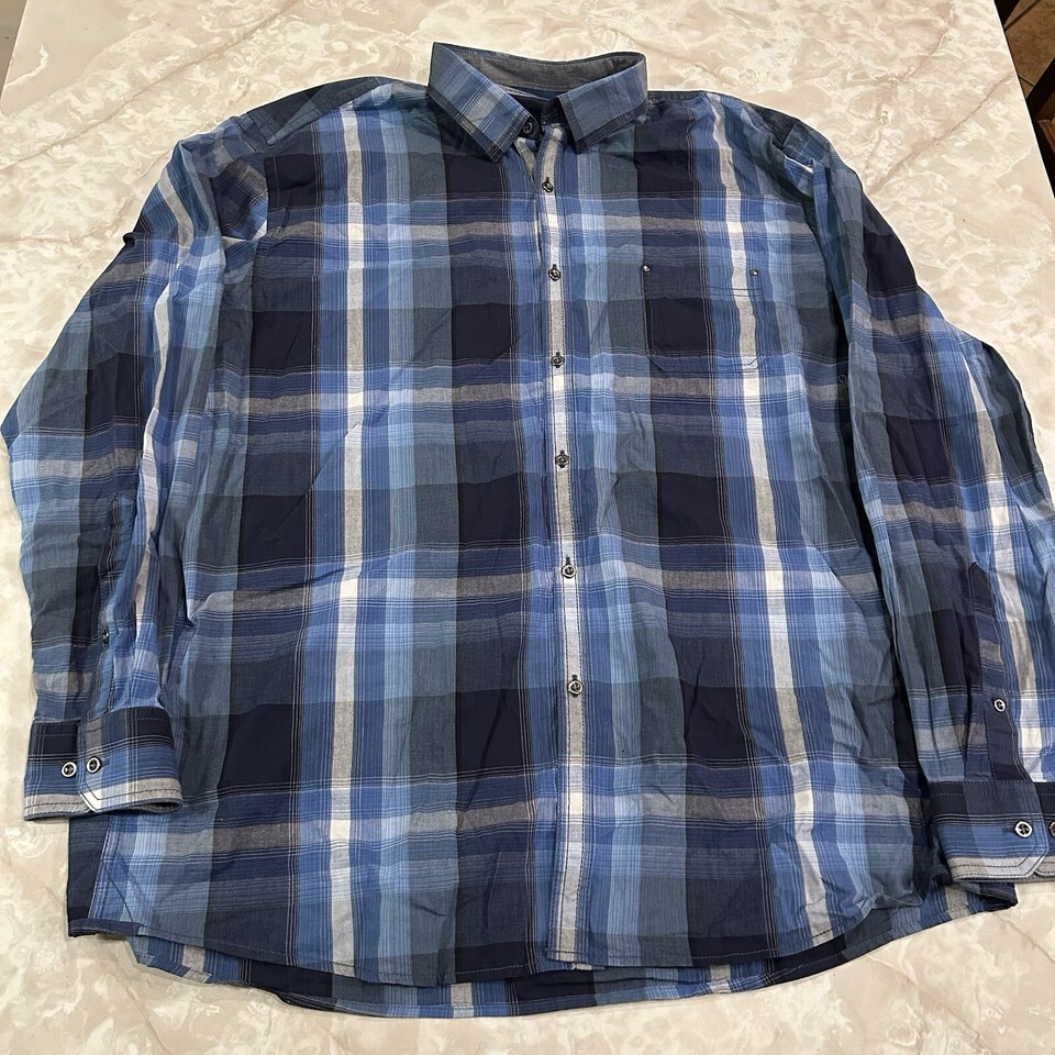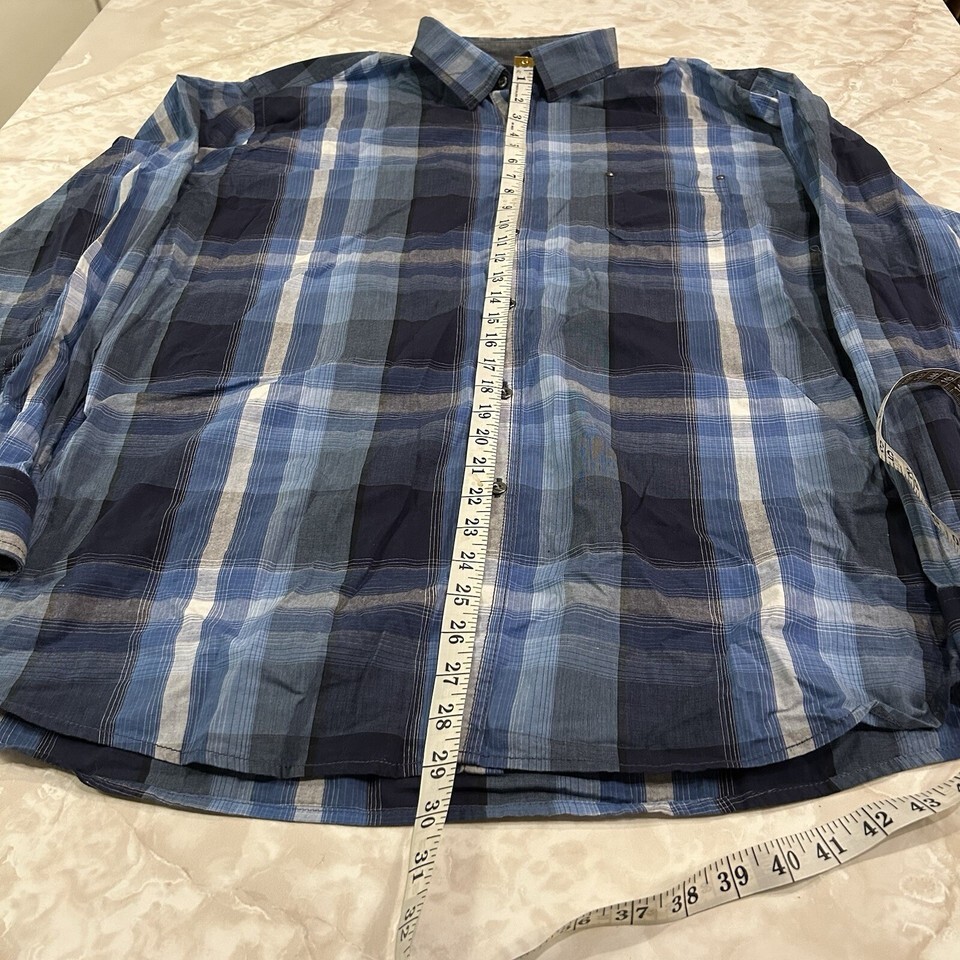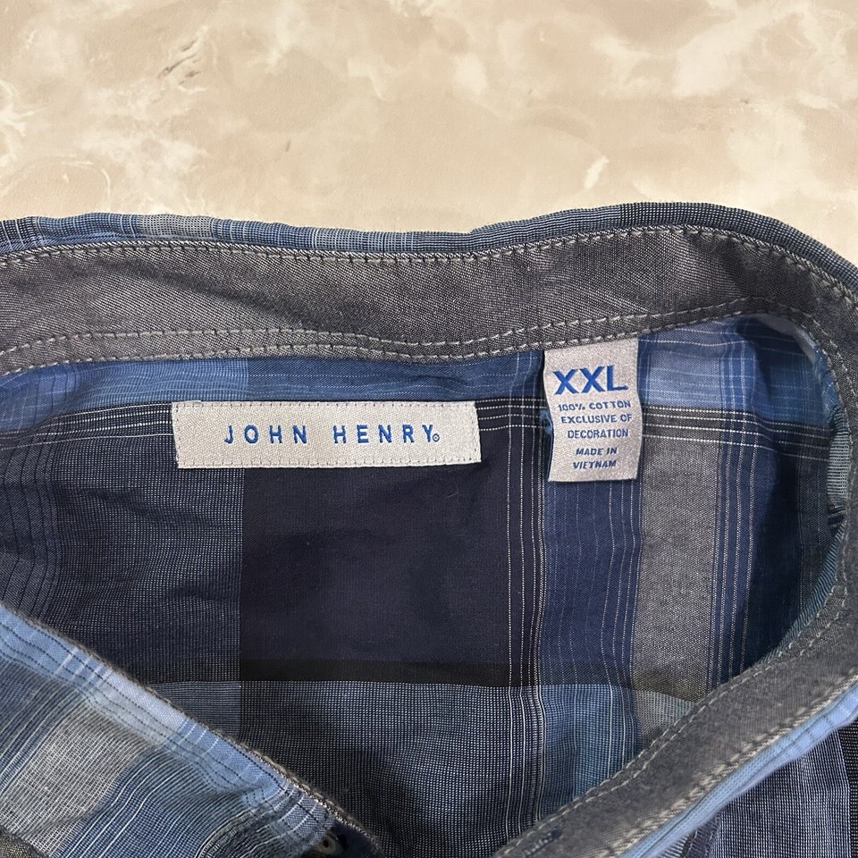 John Henry button up Long Sleeve Men Shirt 2XL Blue Plaid