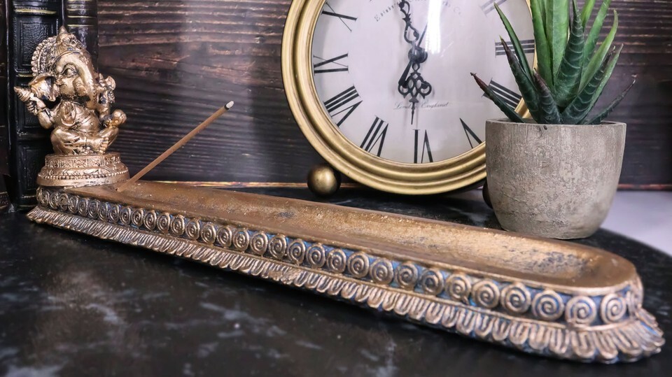 ? This Hindu Ganesha Incense Burner Statue is made of designer composite resin, hand painted and polished individually.