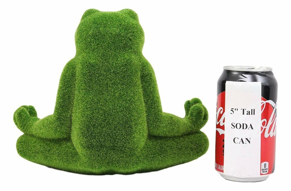 Whimsical Meditating Yoga Frog Garden Statue In Flocked Artificial Moss Finish