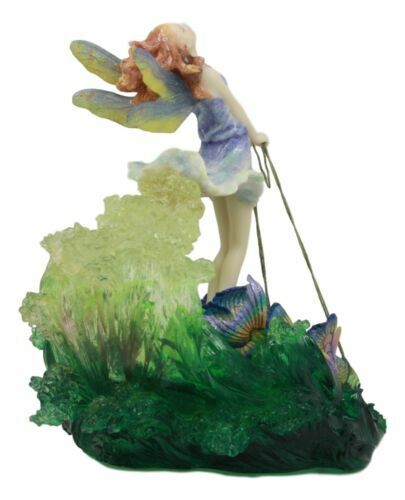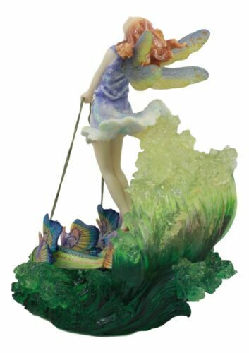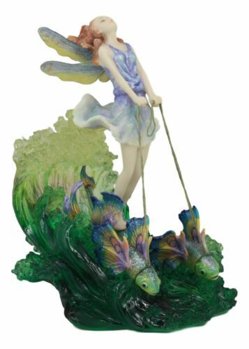 ? Decorate your shelves, desks and living room spaces with this magnificent figurine. It features a beautiful adventurous Atlantean sea fairy riding a special two rainbow fish ocean chariot. This chariot rides on the water surface as well as under the sea.