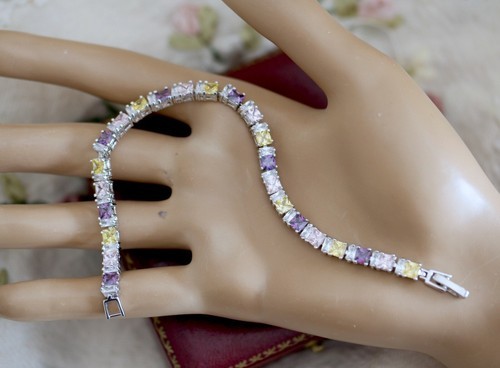 Vintage Mexico Sterling Silver Multi-Color Inlay Pie Cut Stone Bracelet 7.75"