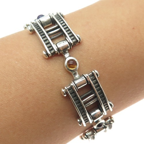 Vintage Mexico Sterling Silver Amethyst Link Bracelet 7.25"