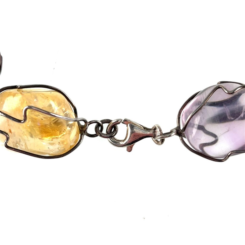 Vintage Sterling Silver Wire Wrapped Multi-Color Gemstone Bracelet 10"