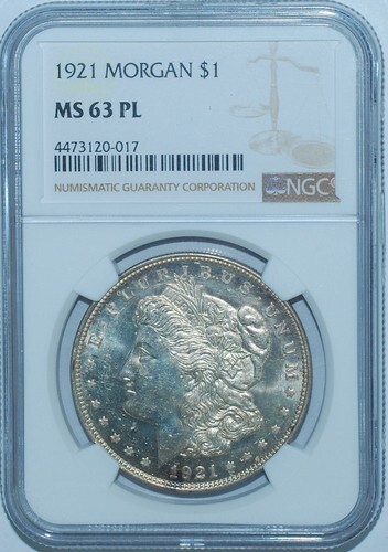 1921-D $1 Silver Morgan Dollar Graded by PCGS as MS-64