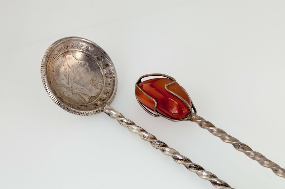 Brazil 2000 Reis Silver Coin Iced Tea Spoon Lot of 2, 8" Long