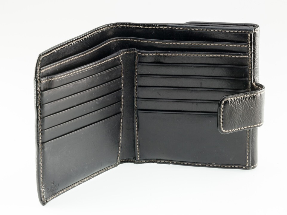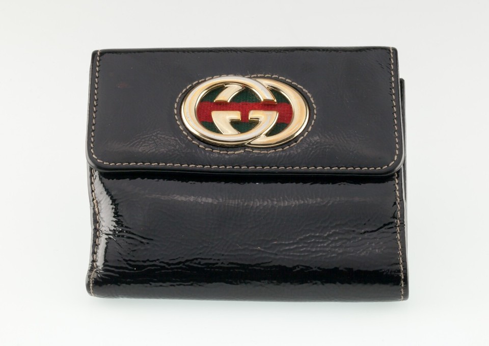 Gucci Black Patent Leather Britt Compact Bifold Wallet Nice!