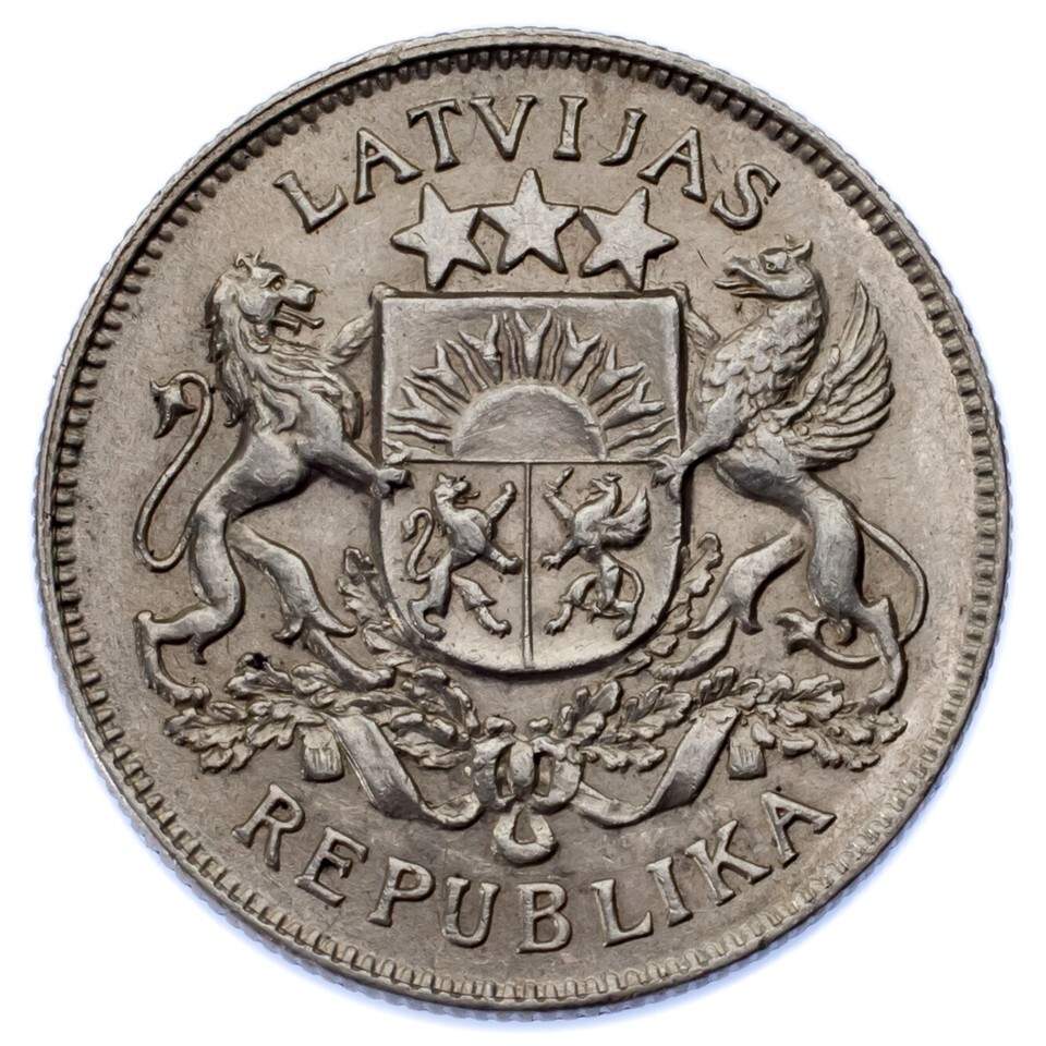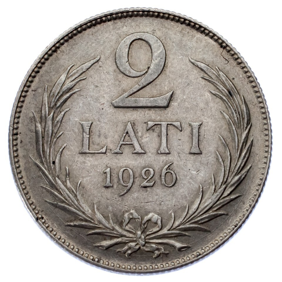 1926 Latvia 2 Lati, Almost Uncirculated (AU), KM#8, 0.835 silver (1,114,000)