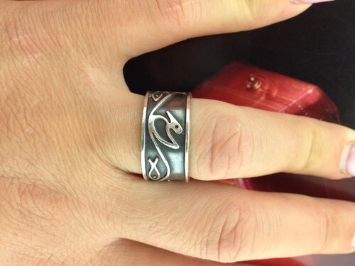 Unique Silver Ring with two open wing Eagle one on each side on onyx stone