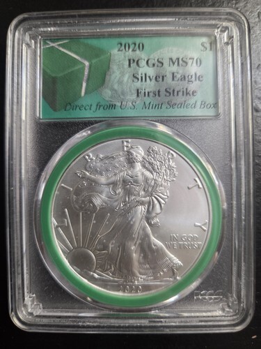 2020 Silver American Eagle Graded by NGC as MS70 FDOI american Flag Label