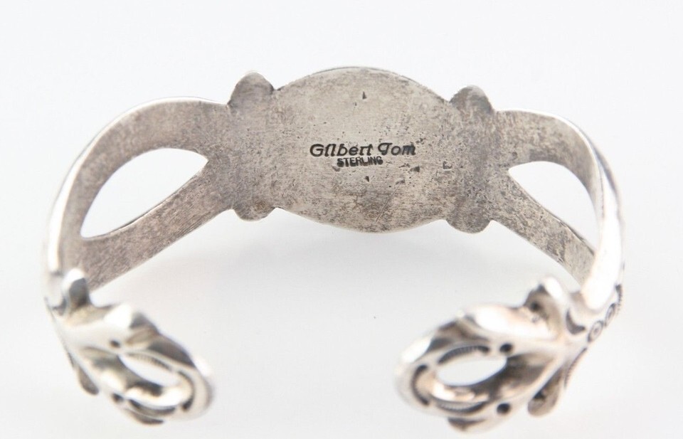 Vtg Sterling Silver Gilbert Tom Navajo Turquoise Cuff Bracelet Unique Piece!