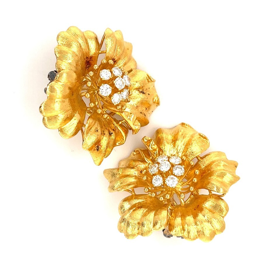Beautiful 18k Yellow Gold and 0.95 carat Flower-shaped Diamond Earrings 1-1/4" x 1-1/4" 23.2 grams