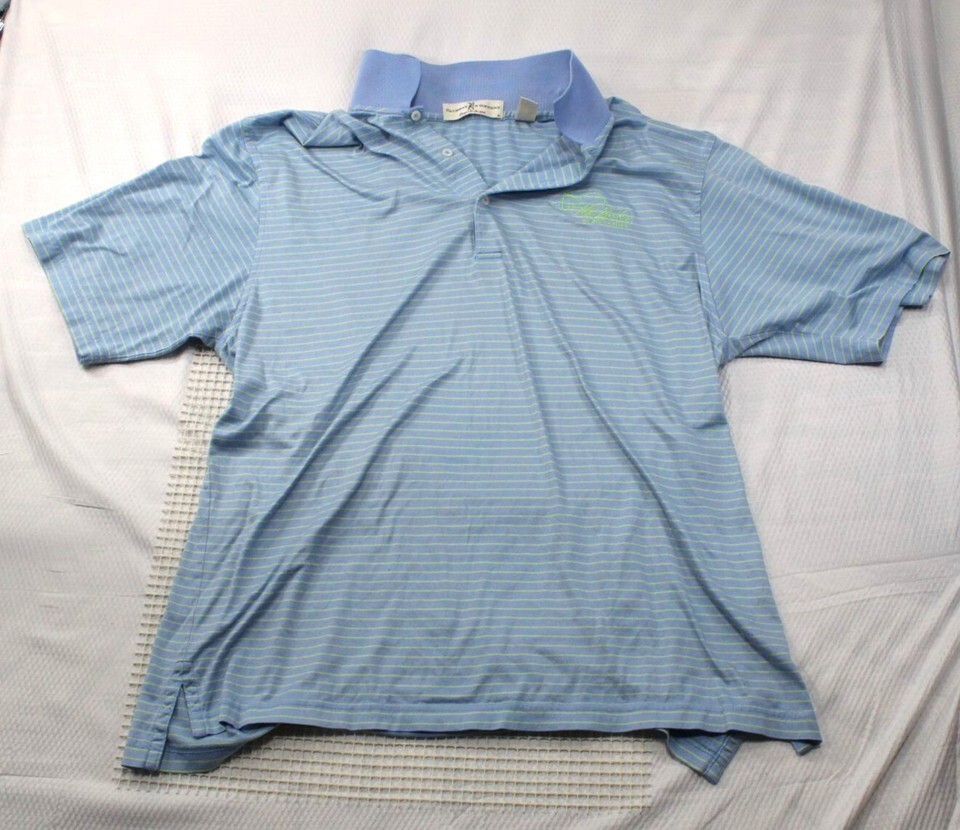 Fairway & Greene Light Blue Striped Polo Golf Shirt L/G 100% Cotton Embroidered