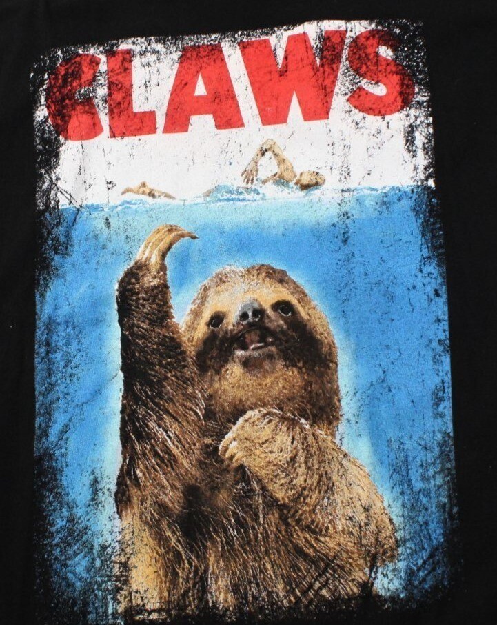 Claws Sloth, Jaws Parody Graphic T-Shirt Black 2X By Black Matter