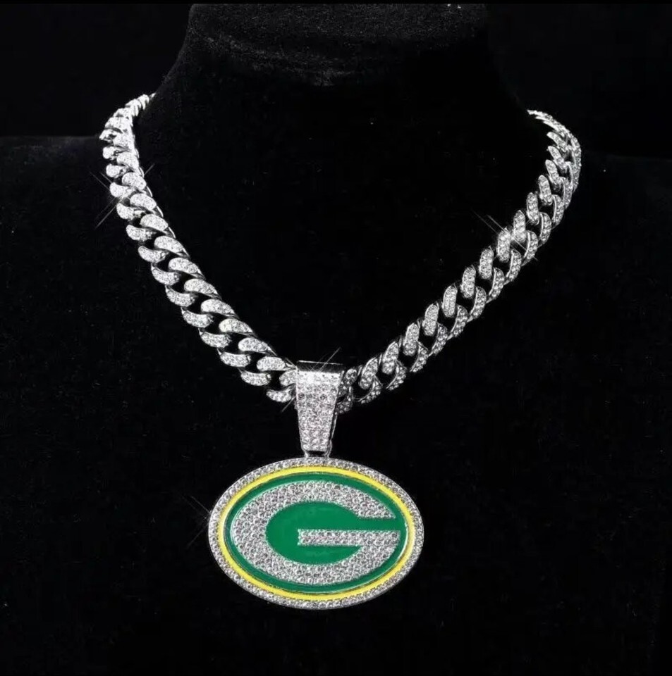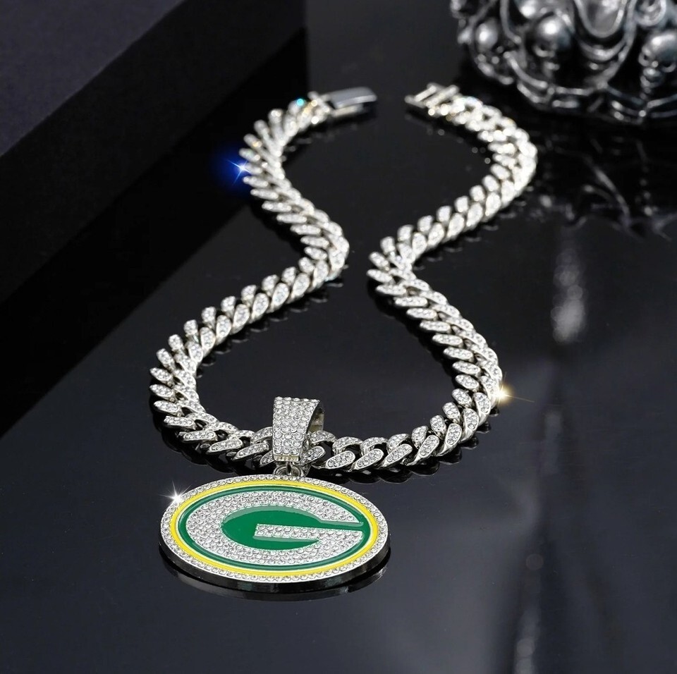 Green Bay Packers Gem Necklace Silver Bling and similar items